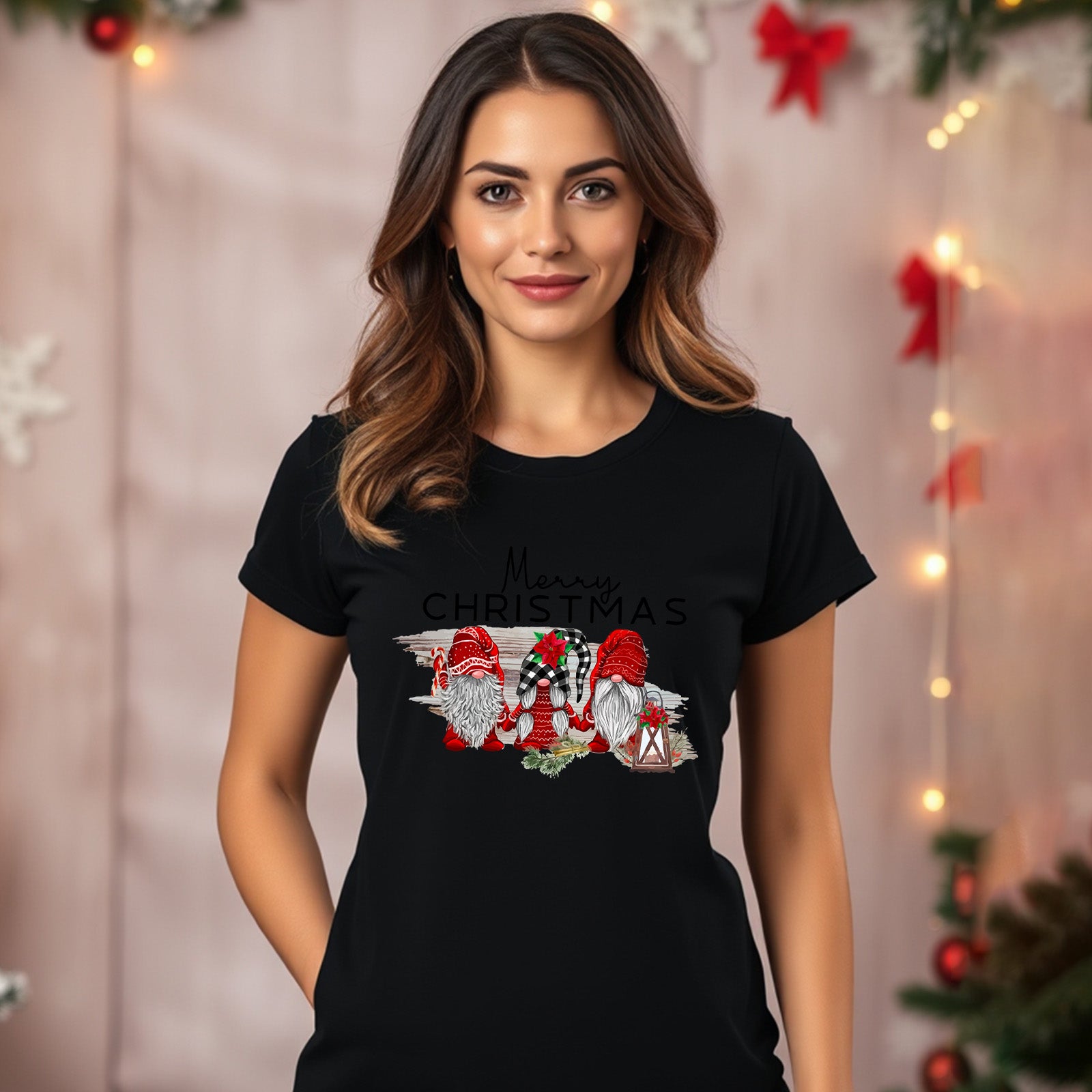 Get ready to turn heads this festive season with our unique and charming gnome Christmas T-shirt, designed for men, women, and the whole family! Whether you're attending a Christmas party or looking for the perfect funny Xmas gift, this T-shirt brings the holiday spirit alive. Featuring adorable gnomes wrapped in sparkling Christmas lights, this tee is bound to bring smiles wherever you go!