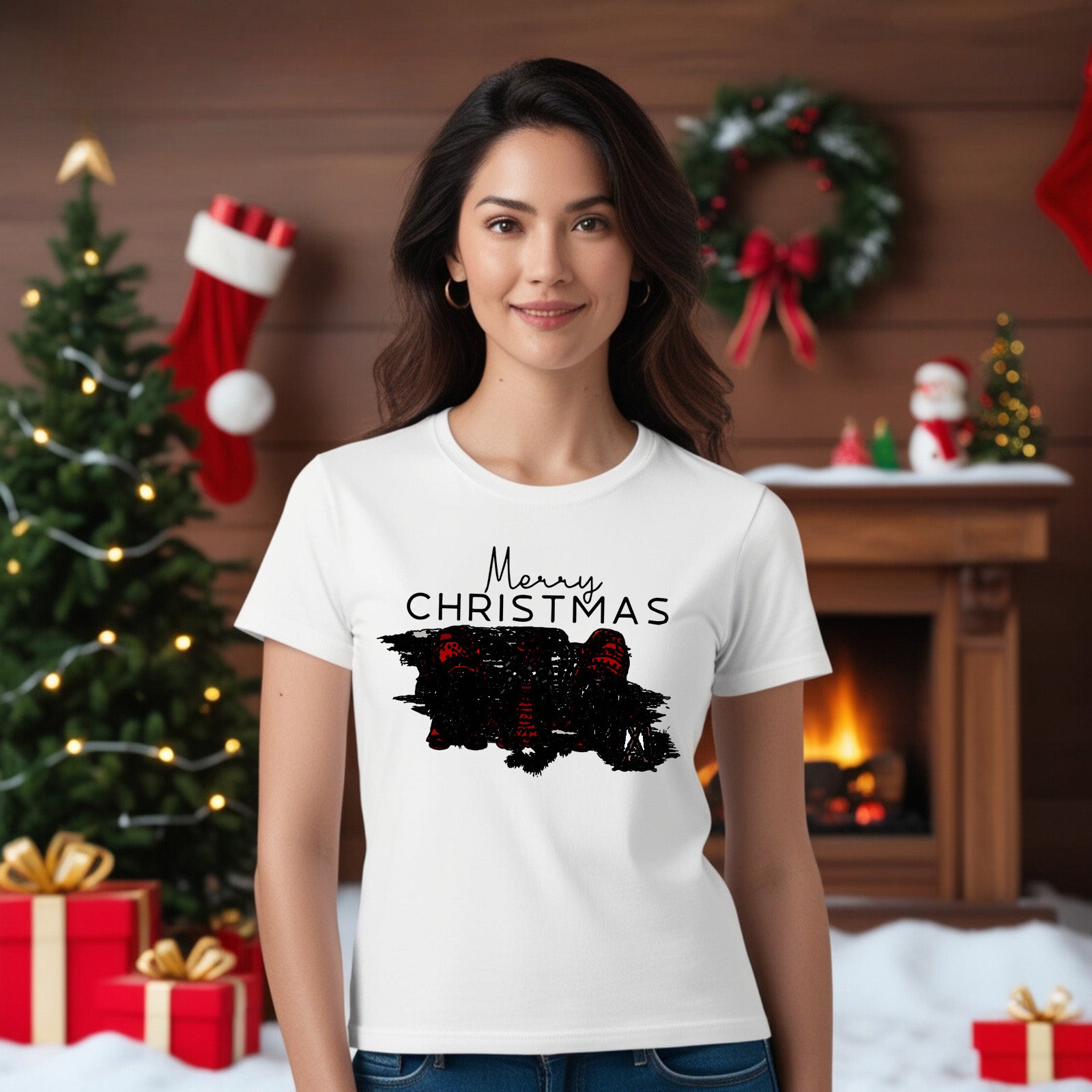 Available in White, Black, and Red, this T-shirt is perfect for any Christmas occasion. Due to lighting and photography effects, the color of the shirt may appear slightly lighter or darker in the images, so keep this in mind when making your selection.